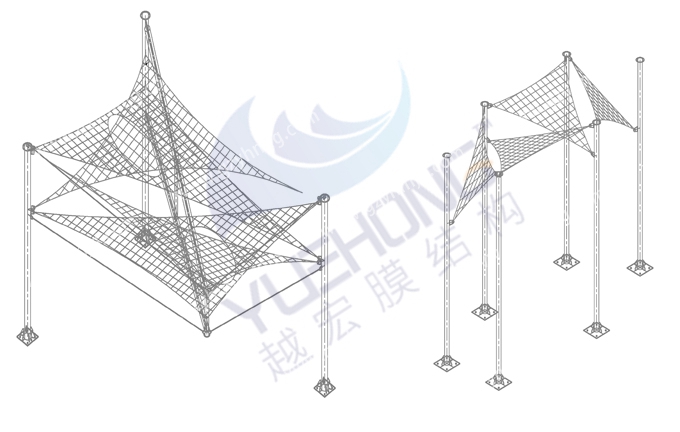 越宏膜結構廠家的景觀膜結構是由鋼結構和膜材組成,分別有張拉式膜結構、索膜結構、骨架式膜結構、空間結構樣式供選擇,根據不同場景進行設計出個性化膜結構。